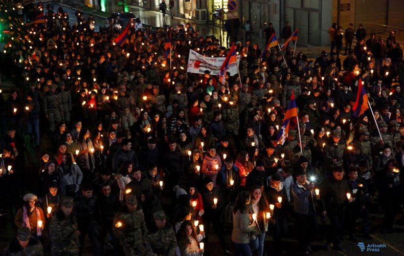 Հազարավոր երիտասարդներ, ուսանողներ ու աշակերտներ իրենց խոնարհումն են բերել 1915թ. զոհերի հիշատակին: Երթին մասնակցում էին ԱՀ ԱԺ փոխնախագահ Վահրամ Բալայանը, ԱՀ մշակույթի, երիտասարդության հարցերի ևզբոսաշրջության նախարար Լեռնիկ Հովհաննիսյանը, ՀՅԴ Արցախի ԿԿ, Ստեփանակերտի «Ա. Մկրտչյան» կոմիտեության անդամներ: