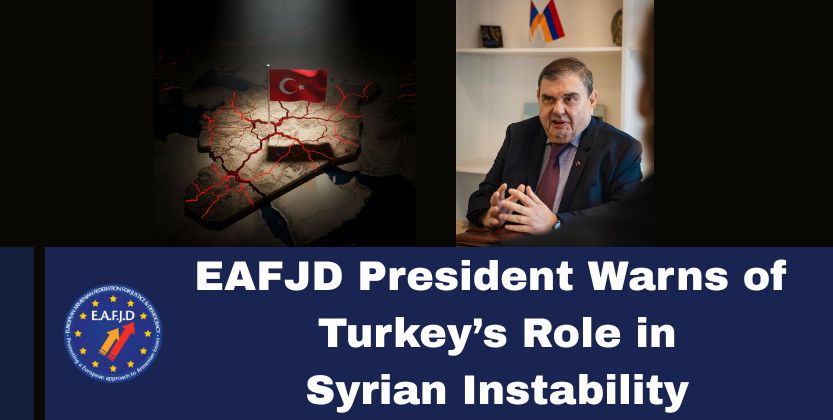 In a statement, EAFJD President Kaspar Karampetian warned that Turkey’s actions are undermining efforts to restore national cohesion, keeping Syria in a state of ongoing instability while continuing to interfere in its internal affairs. Recent armed clashes between state forces and Kurdish units have further heightened tensions.