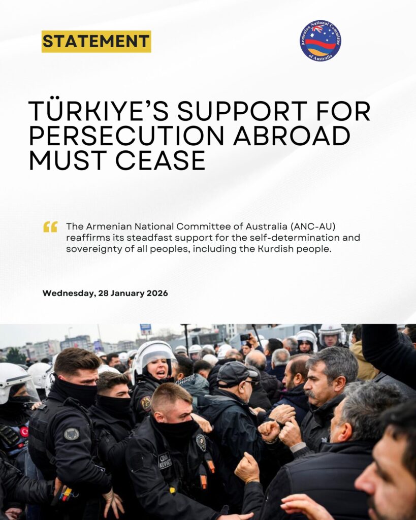 The Armenian National Committee of Australia (ANC-AU) reaffirms its steadfast support for the self-determination and sovereignty of all peoples, including the Kurdish people.