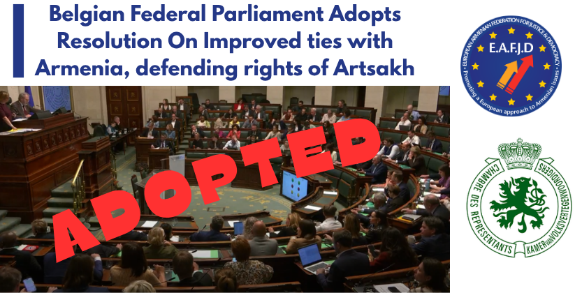 BRUSSELS 17th of April 2025 – The European Armenian Federation for Justice and Democracy (EAFJD) welcomes the unanimous adoption of a comprehensive resolution by the Belgian Chamber of Representatives yesterday. This vote marks a significant milestone in strengthening the rapprochement between Belgium and Armenia, while signaling strong support for Armenia’s continued integration with the European Union.