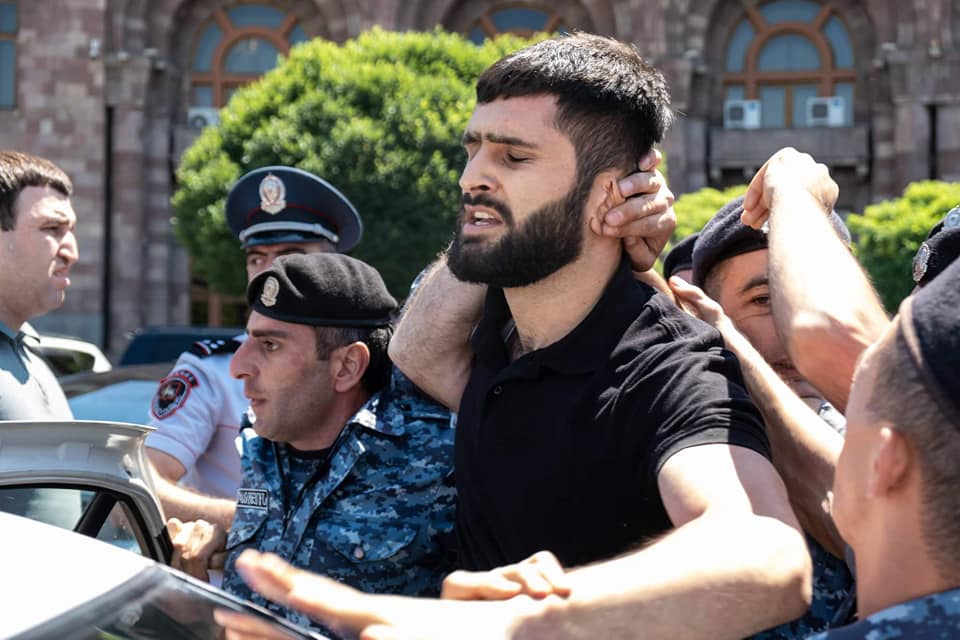 Կառավարության շենքի մոտից ոստիկանները բերման ենթարկեցին ՀՅԴ Հայաստանի երիտասարդական միության կազմակերպած ակցիայի մասնակիցներին: Իրավիճակը լարվեց, ակցիայի մասնակիցները դիմադրում էին եւ փորձում էին թույլ չտալ, որ տանեն իրենց ընկերներին:
