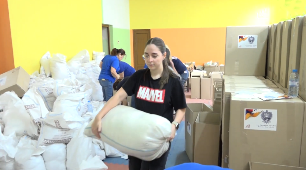 Վերջին օրերին շարունակվում է եռուզեռի մեջ մնալ Արամ Մանուկյան կենտրոնը։ Հաջորդաբար հասնում են Հայ Օգնության Միության (ՀՕՄ) հովանավորած բեռնատարները, որոնք սնունդ և մաքրությանն առնչվող նյութեր են տեղափոխում Կենտրոն։ ՀՕՄ-ի Կենտրոնական և Հայաստանի Շրջանային Վարչության անդամները, հայրենի մասնաճյուղերի մեր ժրաջան ՀՕՄ-ուհիները, ՀԵՄ-ի երիտասարդներն ու արտասահմանյան տարբեր երկրներից հայրենիք ժամանած կամավորները մեղվի աշխատասիրությամբ կատարում են բեռնաթափումը և սահմանված չափով այն տեղադրում են հատուկ արկղերի մեջ, որպեսզի բաժանվի տեղահանված արցախահայությանը։ Այսօր առաջին հանգրվանի աշխատանքները պետք է ավարտվեն և պատրաստած սննդի արկղերը պետք է բաժանվեն Երևանում և հատկապես մարզերում ցանկագրված և ժամանակավոր ապաստան գտած արցախահայ մեր հայրենակիցներին։ Նվիրատվություններն ու հանդերձահավաքը շարունակվում է․․․