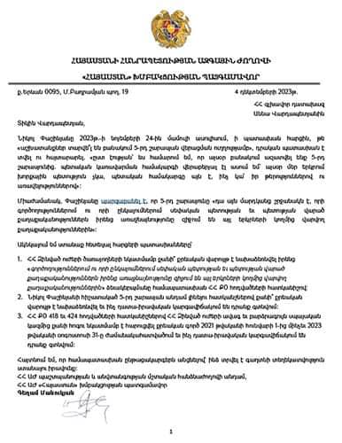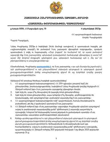 Դեռ դեկտեմբերի 4-ին նրան ուղղված գրավոր հարցում էի ուղարկել, որ պարզեմ, թե 2023թ.-ի նոյեմբերի 24-ի մամուլի ասուլիսում Փաշինյանի հայտարարությունը, որ «այսօր բանակում ազատվել ենք 5-րդ շարասյունից», ինչպես է արտահայտվել ՀՀ Զինված ուժերում։ Պապիկյանին ուղղել էի ընդհանուր վեց հարց։ Դրանց պատասխանելու համար օրենքով նախատեսված 5 օրվա փոխարեն Պապիկյանից պահանջվել է քսան օր, իսկ արդյունքում ստացել եմ 1 նախադասությամբ պատասխան՝ «ՀՀ պաշտպանության նախարարությունն այլ պարզաբանումներ, քան տրվել է ՀՀ վարչապետի կողմից՝ չունի»: Քսան օր լռել, որ վերջում հայտարարել, թե շեֆն ամեն դեպքում ճիշտ է, առավել քան տարօրինակ է։