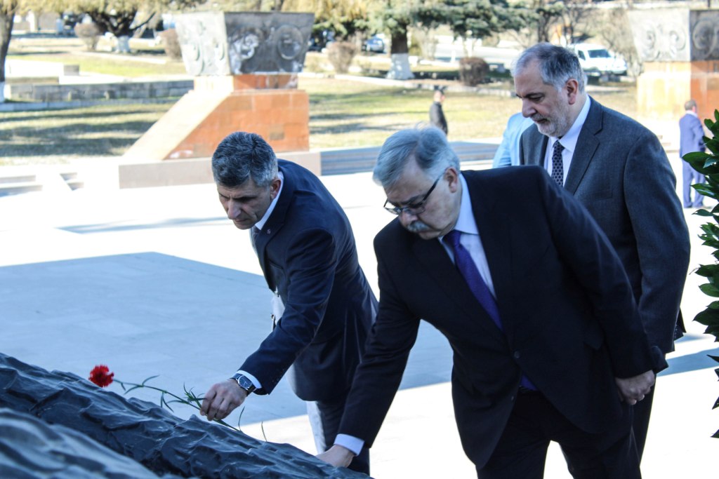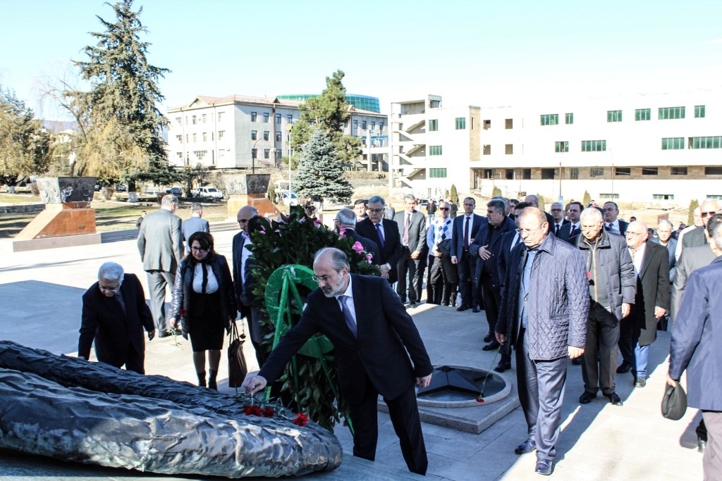 Ստեփանակերտում մեկնարկած ՀՅԴ 33-րդ Ընդհանուր ժողովի պաշտոնական բացման նիստից հետո աշխարհի շուրջ 30 երկրներից Արցախ ժամանած ավելի քան 100 ներկայացուցիչներն այցելել են Ստեփանակերտի հուշահամալիր հարգանքի տուրք մատուցել եւ ծաղիկներ խոնարհել Եղբայրական գերեզմանոցում եւ Արցախի Գերագույն խորհրդի առաջին նախագահ Արթուր Մկրտչյանի հուշաքարին: