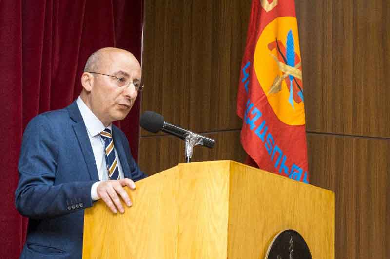 Ապա բանախօսը լուսարձակի տակ առաւ Դաշնակցութեան 135-րդ տարեդարձը ու շեշտեց. «1919-ի աշնան Երեւանի մէջ գումարուած ՀՅԴ-ի 9-րդ Ընդհանուր ժողովը որդեգրեց «Ազատ, անկախ եւ միացեալ Հայաստան»-ի գաղափարը` իբրեւ նպատակ: Նոյն Ընդհանուր ժողովը նաեւ բանաձեւեց, որ Ղարաբաղը եւ Զանգեզուրը «անբաժան մասն են անկախ եւ միացեալ Հայաստանի Հանրապետութեան», եւ նորընտիր ՀՅԴ Բիւրոյին յանձնարարեց «բոլոր քայլերը առնելու Զանգեզուրն ու Ղարաբաղը միացնելու հանրապետութեան»: