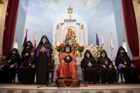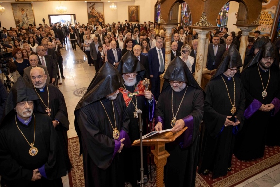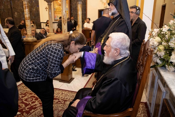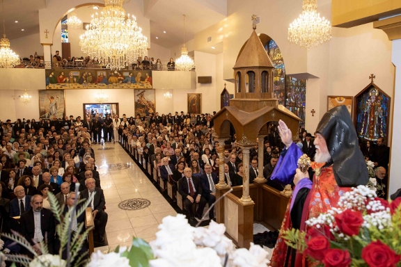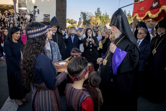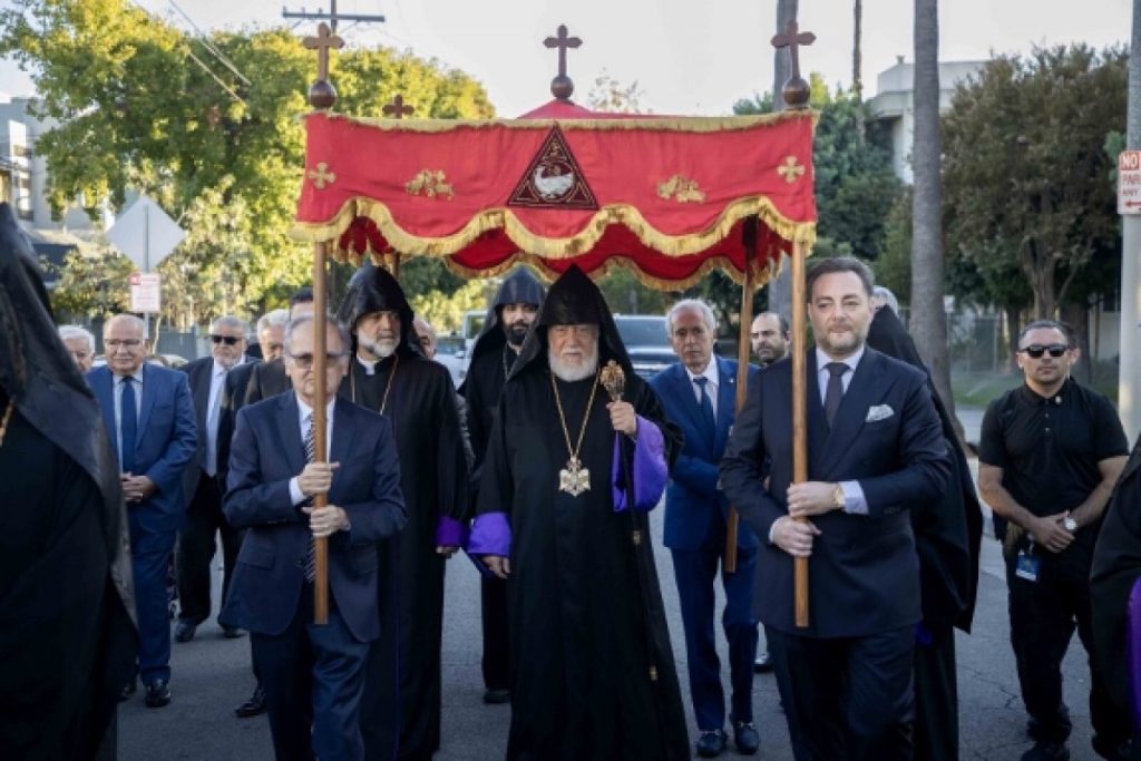 Արամ Ա. Կաթողիկոսը Հոլիվուտի Սուրբ Կարապետ Մայր Եկեղեցւոյ Մէջ Դիմաւորուեցաւ Մեծ Խանդավառութեամբ