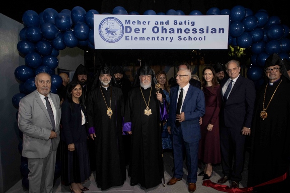 Յատուկ կերպով անդրադառնալով հայ դպրոցին նկատմամբ Քալիֆորնիոյ հայորդիներուն ցուցաբերած նախանձախնդրութեան՝ կաթողիկոսը ըսաւ. «Ես կ՛ողջունեմ յատկապէս Քալիֆորնիոյ մէջ հայ դպրոցին նկատմամբ մեր ժողովուրդին աճող սէրը, սպասումն ու կապուածութիւնը: Այս դրական երեւոյթին շօշափելի օրինակը ահաւասիկ տուած է ազգային բարերար մեր սիրելի Մհերը, ի յիշատակ իր տիկնոջ՝ Սաթիկին: Հայ դպրոցին առաքելութեան նկատմամբ ունեցած իր նախանձախնդրութենէն մեկնելով՝ Մհերը ներկայ բարերարութիւնը կատարեց: Այս առիթով իմ բարձր գնահատանքս կը յայտնեմ Մհերին ու իր զաւակներուն: Կ՛ուզեմ, որ իր այս բարերարութիւնը վարակիչ դառնայ մեր այլ բարերարներուն՝ թէ՛ Միացեալ Նահանգներէն եւ թէ՛ Սփիւռքի այլ գաղութներէն ներս»: