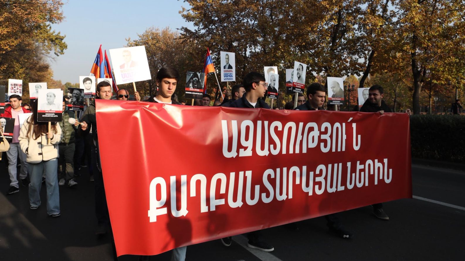 Ակցիայի մասնակիցները երթի ընթացքում վանկարկում էին՝ ազատություն քաղբանտարկյալներին: