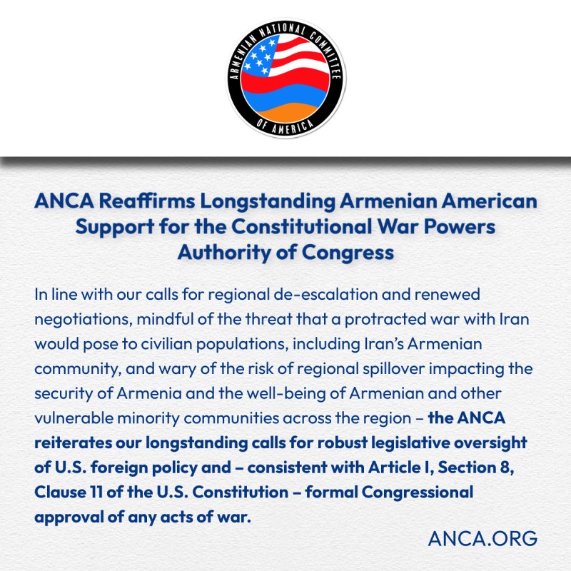 Հայ դատի Ամերիկայի հանձնախումբը վերահաստատում է հայ-ամերիկյան համայնքի երկարամյա աջակցությունը Կոնգրեսի՝ պատերազմի հարցում սահմանադրական լիազորություններին։