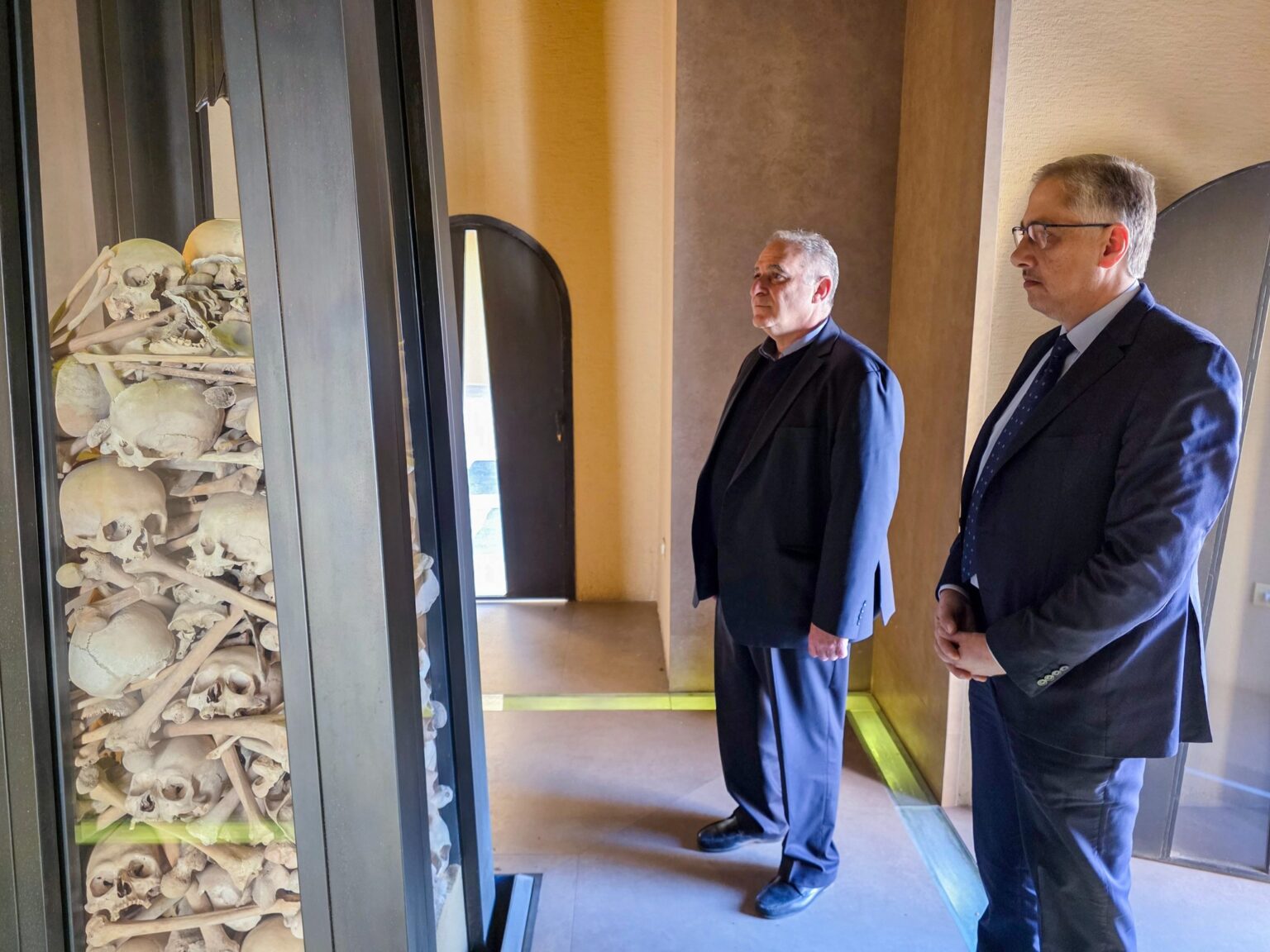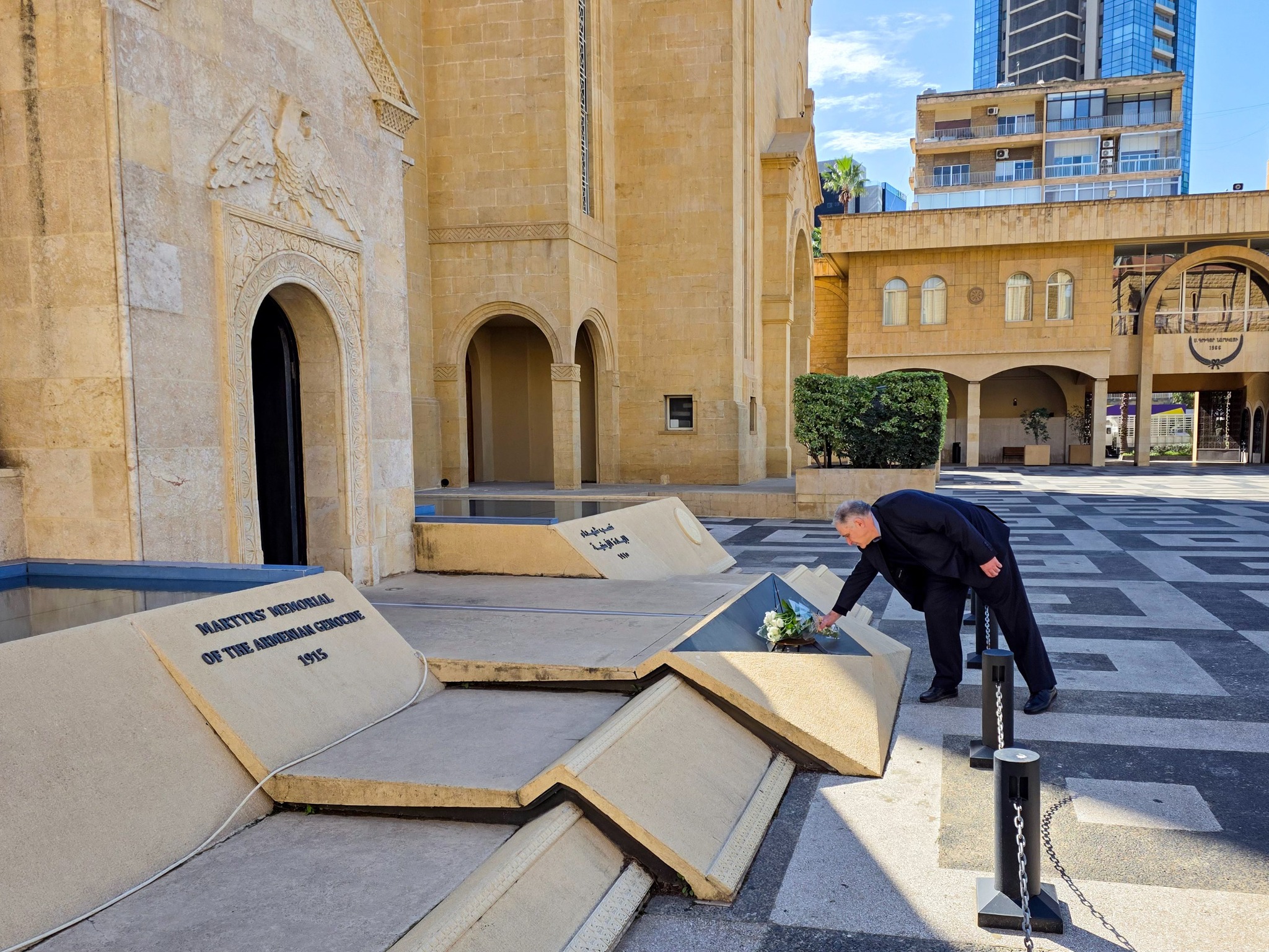 Վեհափառ Հայրապետի հետ հանդիպումէն ետք, Արա Պուլուզեան եւ Ալպեր Պալապանեան ուղղուեցան Կաթողիկոսարանի Սրբոց Նահատակաց յուշարձան-մատուռ եւ ի յիշատակ Սումկայիթի զոհերուն՝ ծաղկեպսակ զետեղեցին: