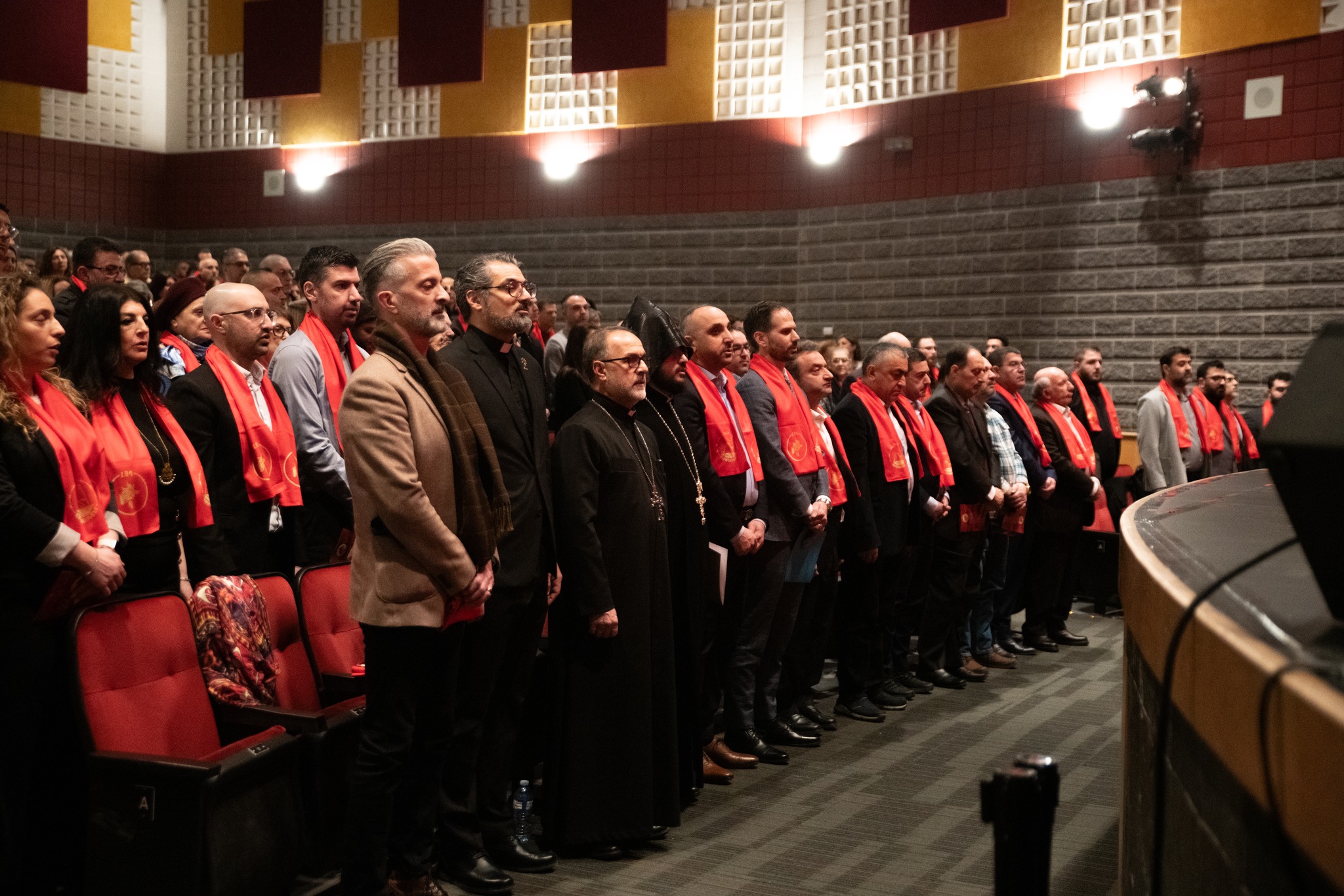 Տօնակատարութիւնը սկիզբ առաւ Հայաստանի Հանրապետութեան, Արցախի եւ Գանատայի օրհներգներով, որմէ ետք պատանիներու երգեցողութեամբ հնչեց «Մշակ Բանուոր» քայլերգը։ Մէկ վայրկեան յոտնկայս յարգանքի տուրք մատուցուեցաւ նահատակներու յիշատակին։